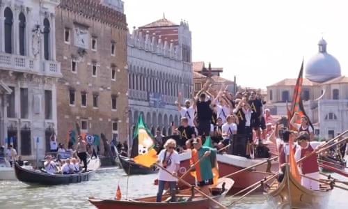 Venezia Players Celebrate Return To Serie A With Boat Parade Through City Video Football The Guardian